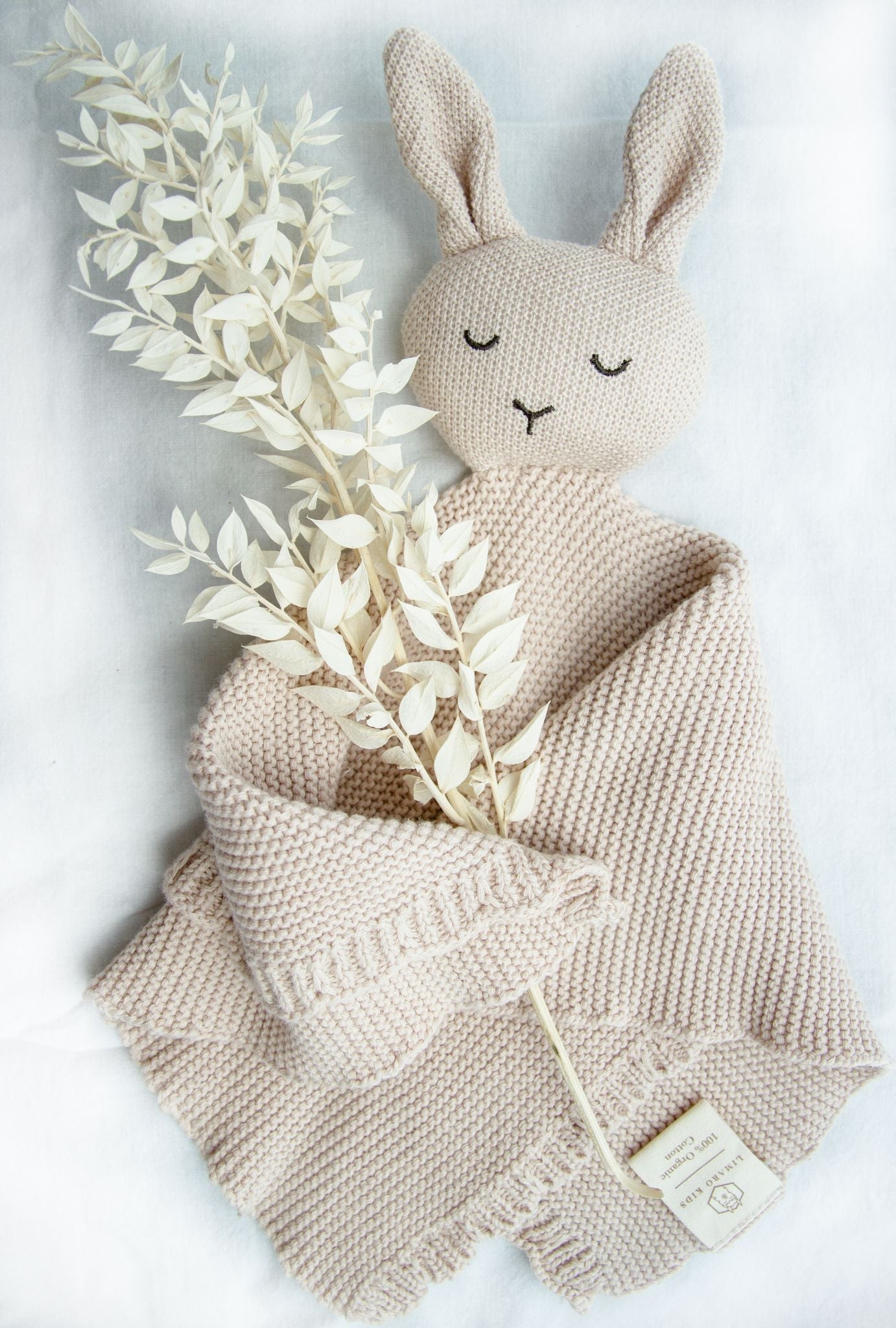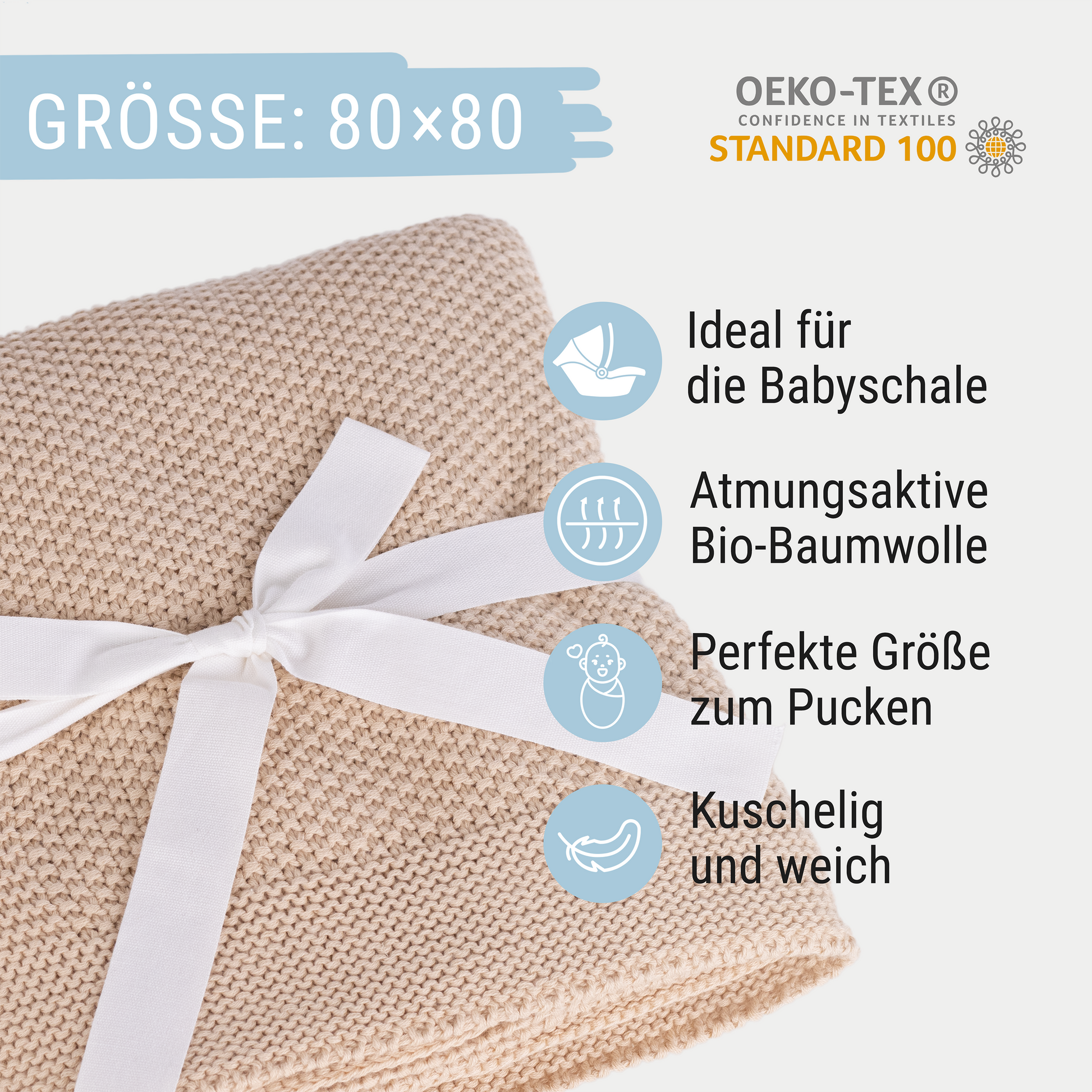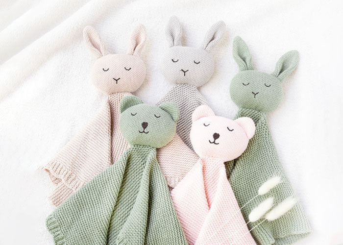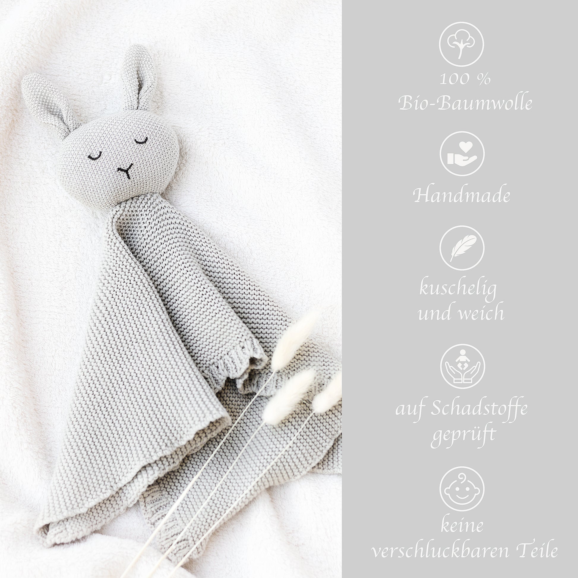 Kuscheliges Schmusetuch aus gestrickter Bio-Baumwolle ist ein perfekter Begleiter im Alltag für Ihr Baby.